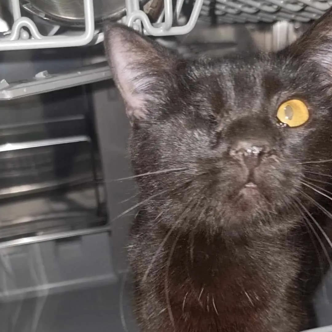 #oneeyedcat #awesomefunkyfelines #blackcat #blackoneeyedcat #voidcat #shadowcat #rescuecat #fostercat #catfostering #fosteringsaveslives #luckyblackcat #wheatbeltcat #colonycat #straycat #catlovers #blackcatlovers #catinadishwasher #lovethiscat #feraltofriendly #sweetcat #catwithoneye #perthcatrescue #perthrescuecat #perthcatlovers #savingcats #fostercarersneeded #canyoufoster